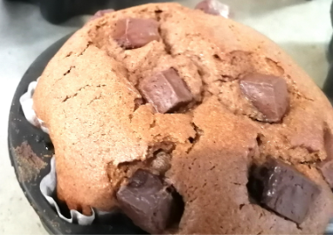 生地にチョコを練り込み、サイノメチョコレートをトッピングしました。